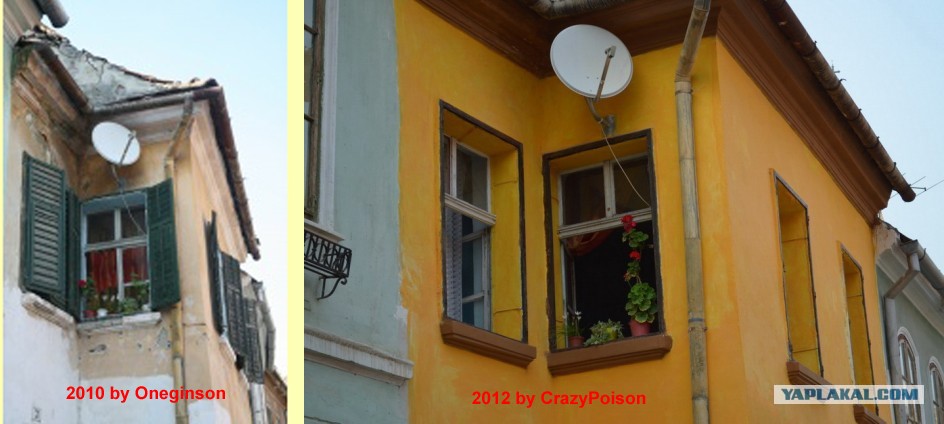 Реально вон смотрю фотоотчёт Онегина, на который он кинул ссылку, обнаружил фотку одного и того же окна в Сигишоаре. Только он делал фотку в 2010 году, а я в 2012... всего 2 года! Они реально ща ебашат и осваивают деньги на реальное улучшение страны!