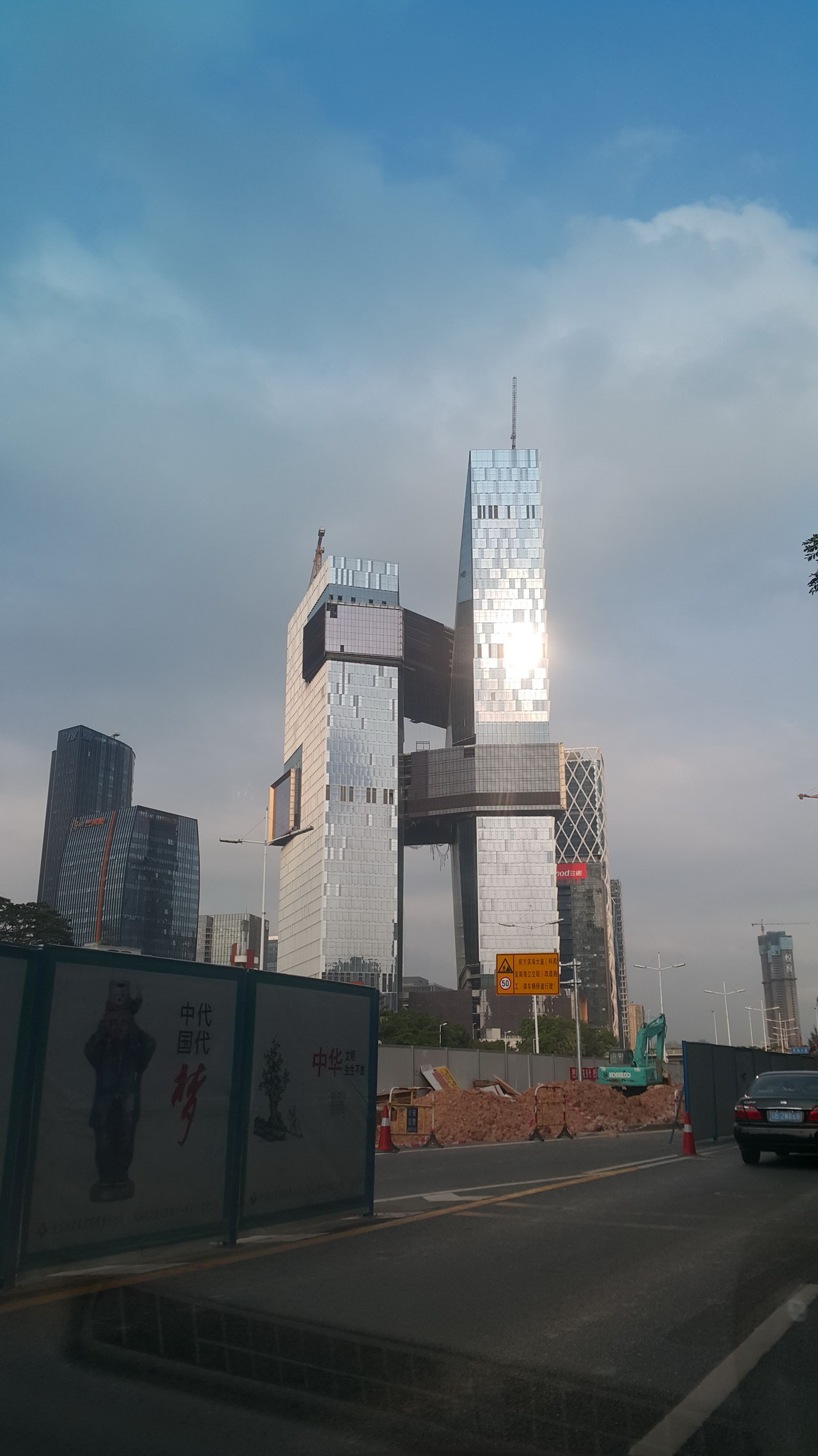 А это моё любимое. Предзакатное солнце играет в стеклах свежеотстроенного небоскреба.