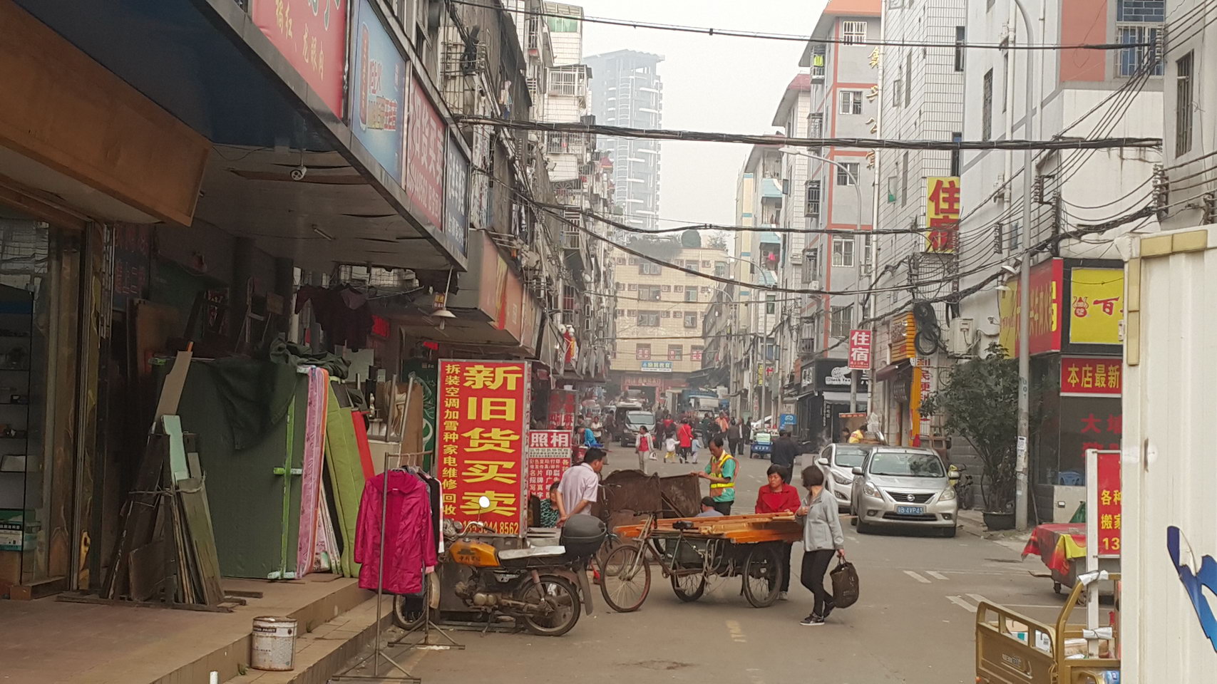 Китай без прикрас. Внизу можете заметить вывески на японском, по-видимому, рассчитанные на японских командированных, т.к. много приезжих японских подрядчиков. При этом вывески могут не дублироваться на китайском.