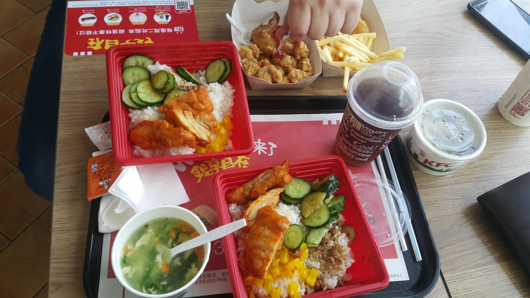 Китайский макдоналдс удивит. Нет, здесь есть бургеры, но такие блюда точно есть не везде в маках по миру. Есть даже нечто вроде цыпленка табака, очень вкусного, кстати.