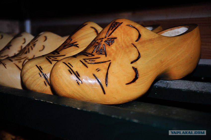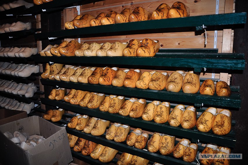 51. После этого чудного города...в затуманенном состоянии едем дальше(кстати, марихуанна в кофешопах стоит по разному, есть от 4,5 евро за грамм, мы курили за 11 евро, название не запомнил, увы)...нас завозят на сыроварню, ну и заодно показывают национальную голландскую обувь кломпы