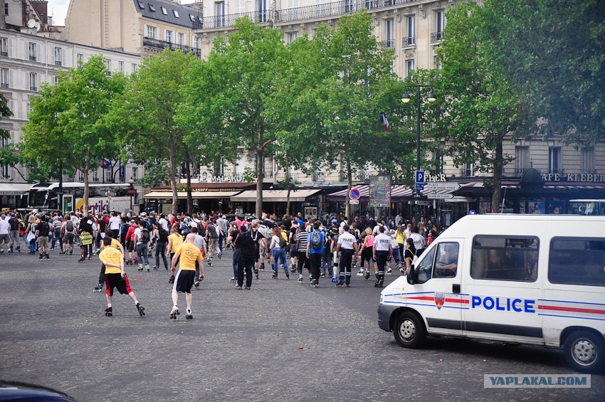 Собравшись выезжать, встречаем огромную колонну роллеров, замыкает полиция