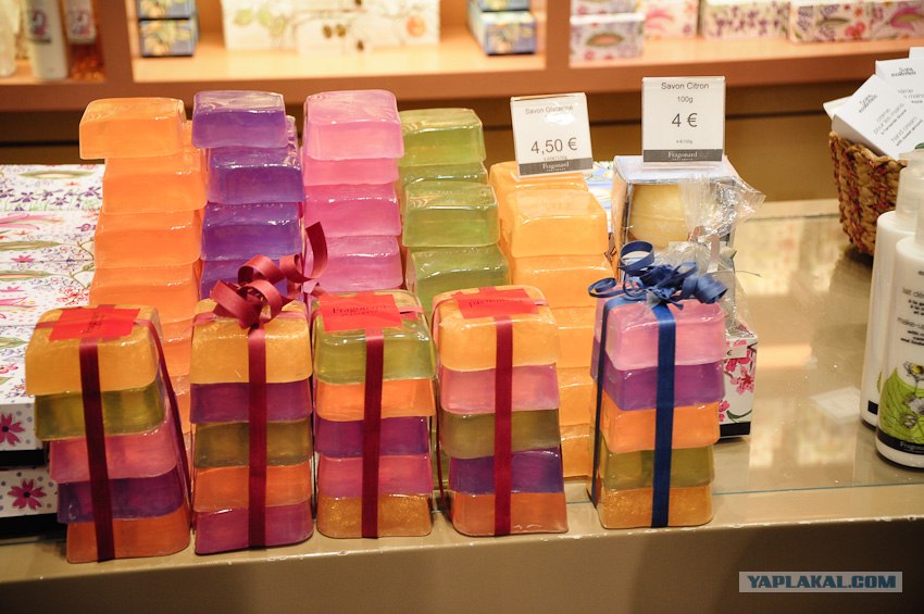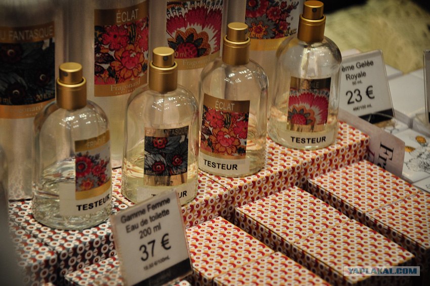 56. Нас завели в музей духов фабрики Fragonard. В таких вот бутылочках раньше хранили духи, ещё в 18-19 веке