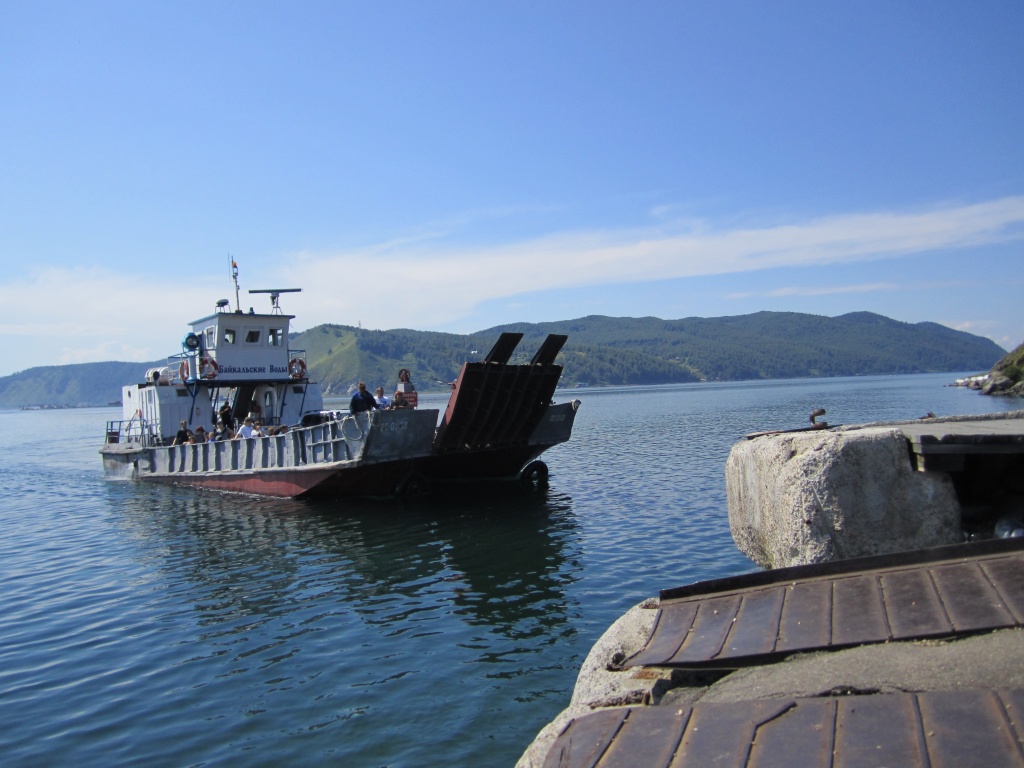51. Днем вернулись в Иркутск, а на следующее утро я собрался в другое путешествие, но уже один. Утром с автовокзала на маршрутке доехал до Листвянки. Небольшой поселок на берегу Байкала, прямо у истока Ангары. Достопримечательности – горячий копченый байкальский омуль. Высший класс, 100р за 30см рыбку. Направлялся я на противоположный берег, в Порт Байкал, чтобы оттуда уехать по Кругобайкальской железной дороге. Между берегами курсирует паром, на этот раз платный и гораздо реже, чем на Ольхон. Для пешеходов цена невелика.