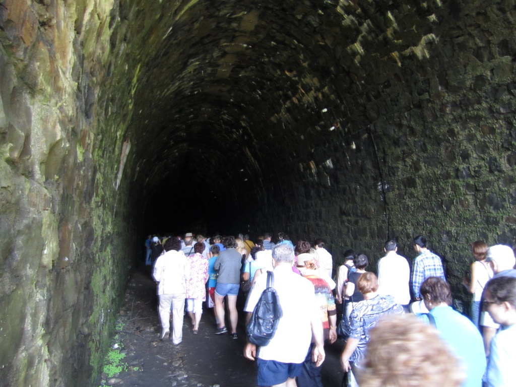 65. Едет поезд очень медленно, километров 15 в час. Быстрее по такой дороге нельзя. В самых интересных местах останавливались, можно было выйти и послушать мегафон экскурсовода. Была даже одна большая стоянка, часа на полтора, где можно было искупаться, поесть омуля и попить вкусного травяного чая из настоящего самовара. В пути замечены стоянки и туристы, которые проходят КБЖД на своих двоих. Почему нет? Там красиво на протяжении всего пути.