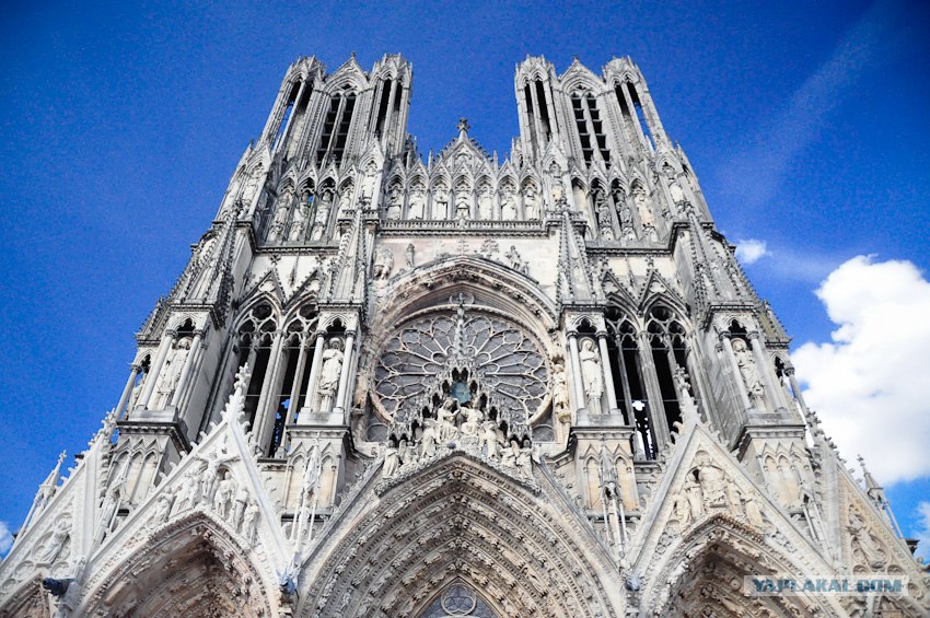 79. После Парижа мы поехали в город Реймс, провинция Шампань, тоже Франция. Там стоит Нотр Дам де Реймс, это тоже собор богоматери, только не в Париже.