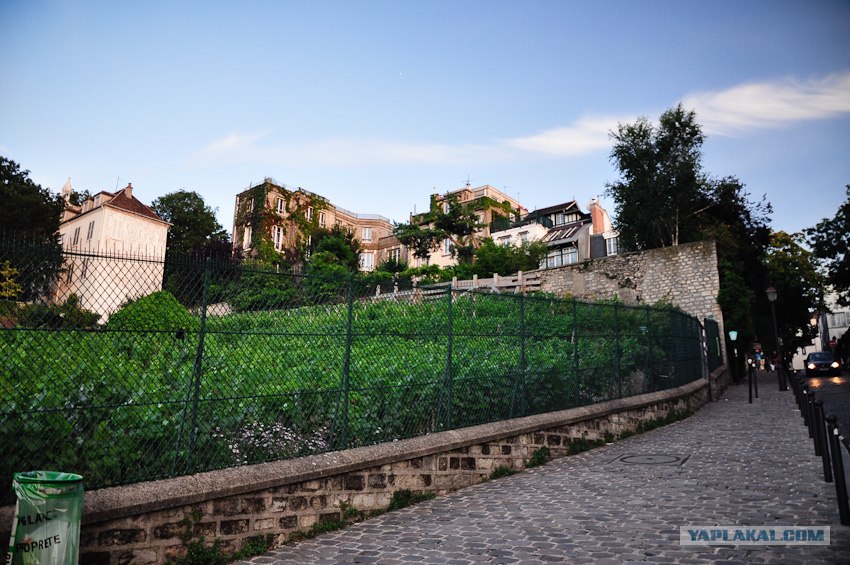 74. Это единственный сохранившийся виноградник в районе Монмартр. С него собирают по 400-500 л вина в год, но, увы, на вкус вино гадость редкая так нам сказала гид, сам не пробовал