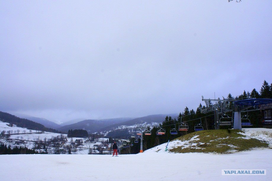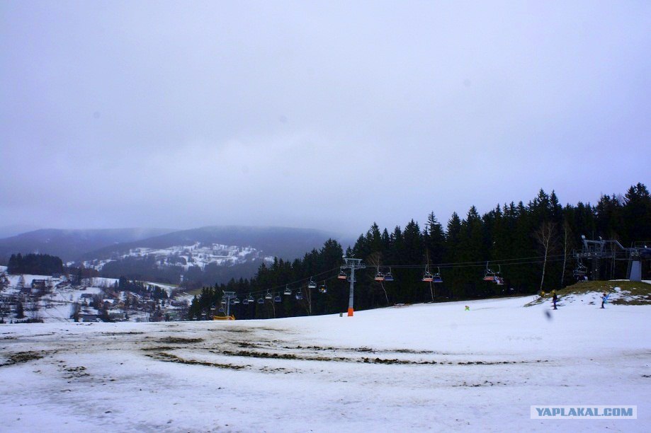 Катание на лыжах обломалось(может оно и к лучшему) из за дождя. Вот так подъехали к подъемнику, только примерялись"вон там прокат, вот тут подъемник, здесь кафе" и пошла непонятная морось.