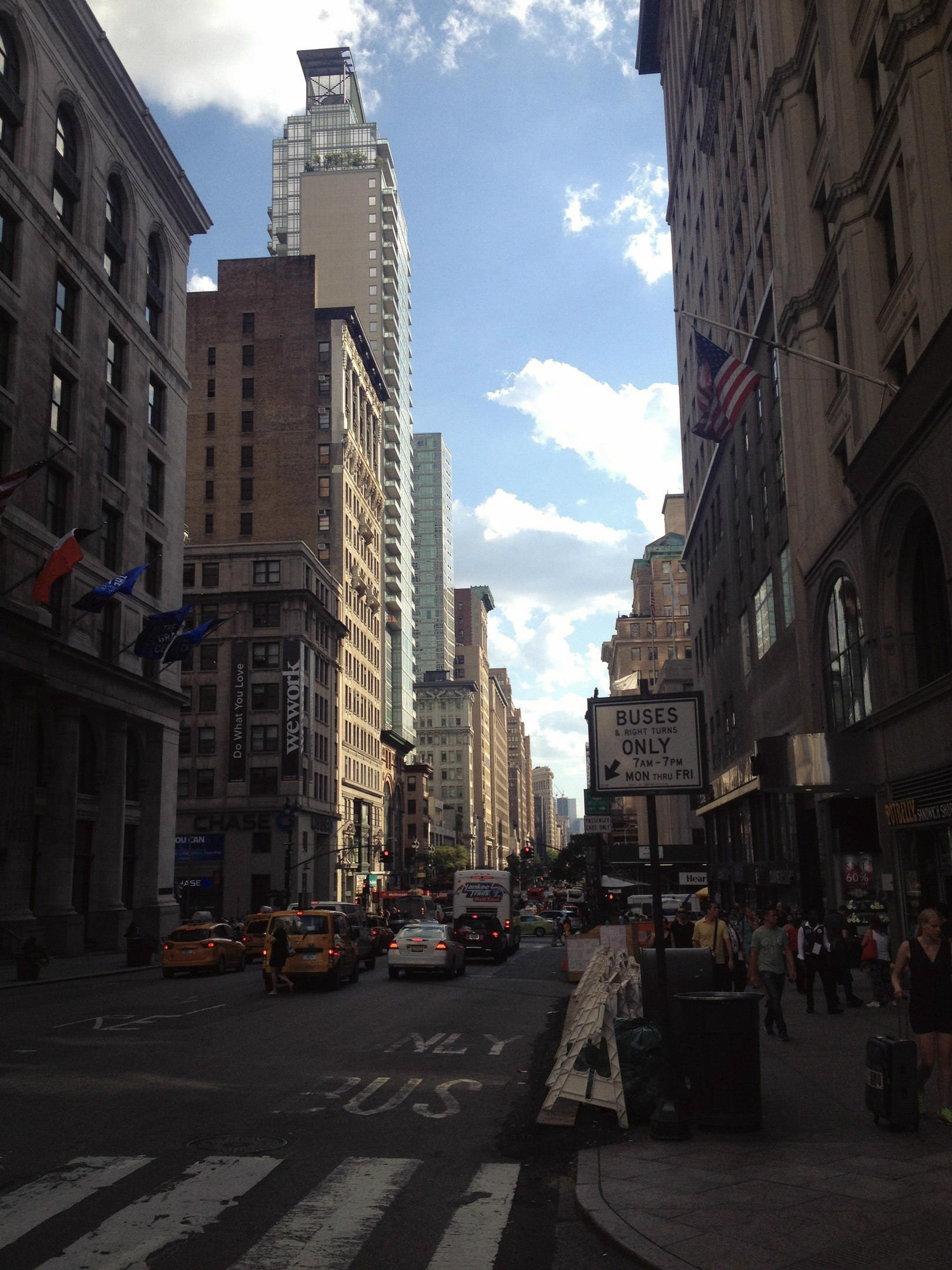 Если в Чикаго все аккуратно придерживаются правил движения по переходам, то тут, в центре NY, действует одно правило: нет машин – иди. Все чхали на светофоры.