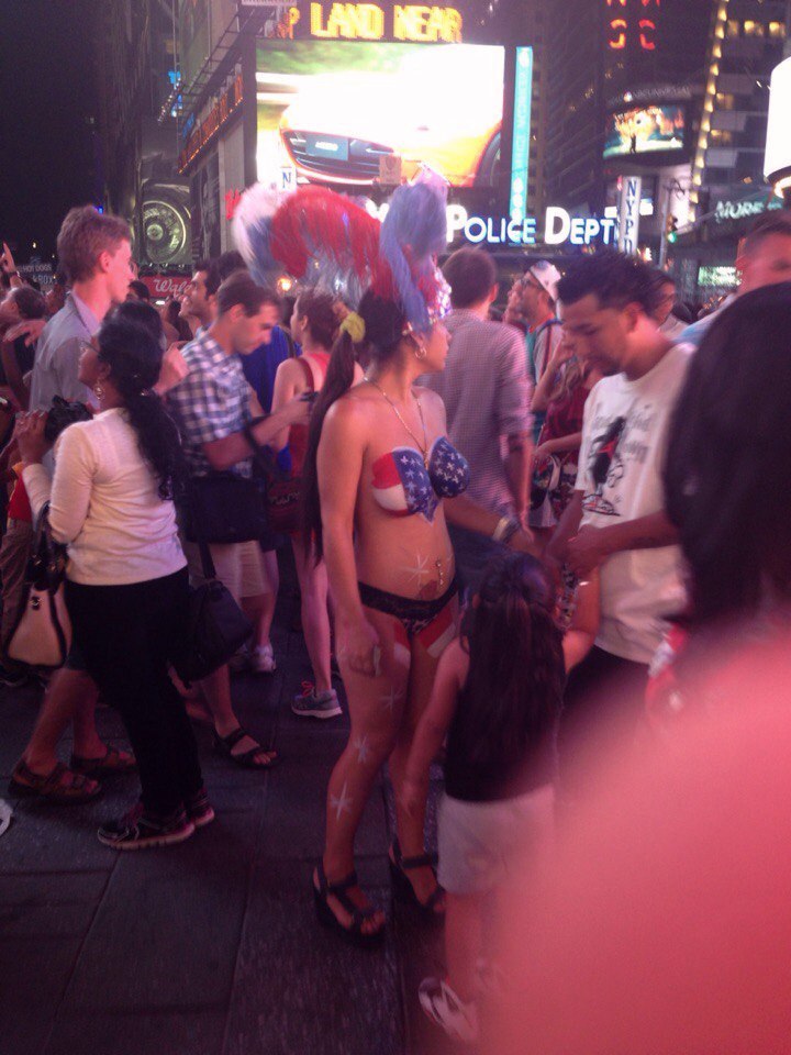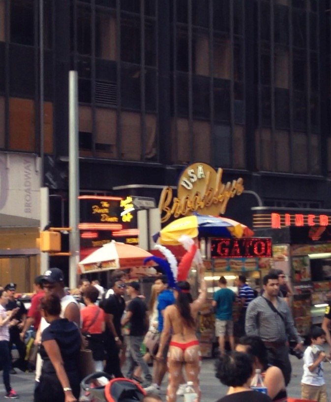 Вокруг бэтмены, халки, супермены, железные человеки, микки-маусы, статуи свободы и многие другие костюмированные личности… Помимо этого Таймс-сквер усыпан вот такими особами (пора слегка раскрыть тему):