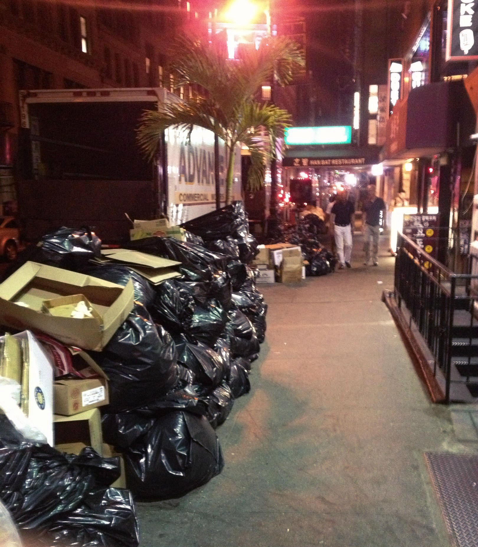 Первая мысль: «Ничего себе сколько мусора!». На дорогах, у дорог, на тротуарах… Манхеттен усыпан гостиницами, ресторанами и прочими заведения для туристов. Из-за огромного количества людей мусора тут скапливается неимоверно много, и все подобные заведения просто выставляют его у порога, и это не один и не два мешка…