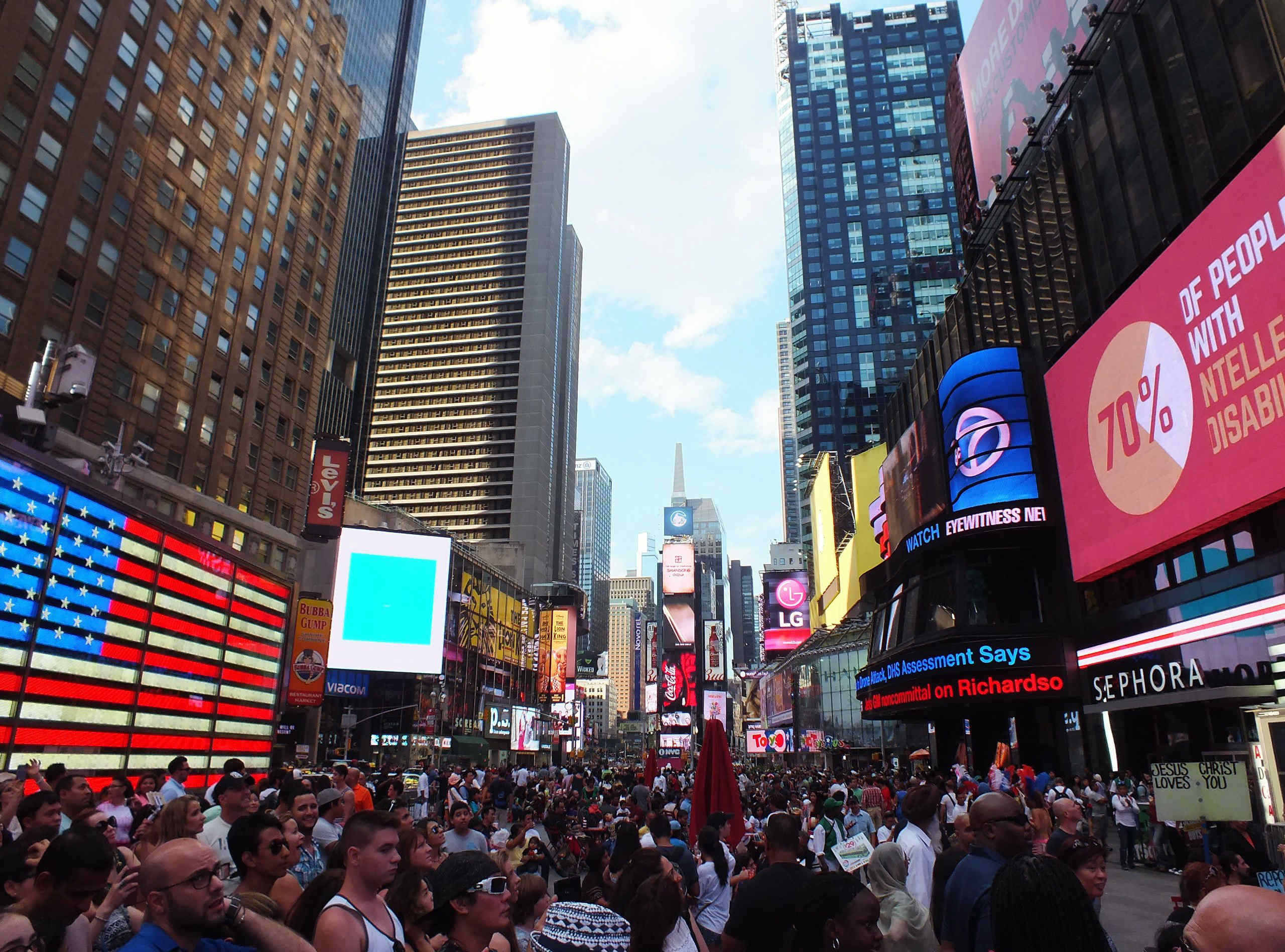 Приближаясь к Таймс-скверу, волей не волей возникает вторая мысль: «Сколько же тут народу…».
