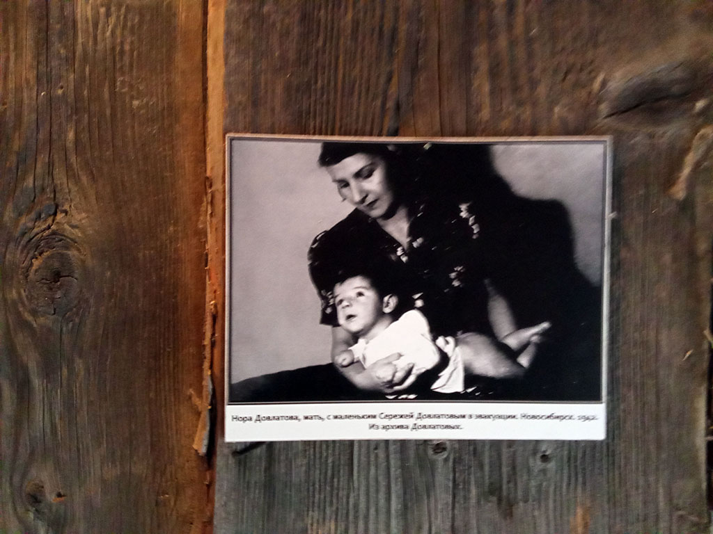 На стене коридора развешаны интересные фотографии. Вот, например, Нора Довлатова с маленьким сыном в эвакуации. Новосибирск.