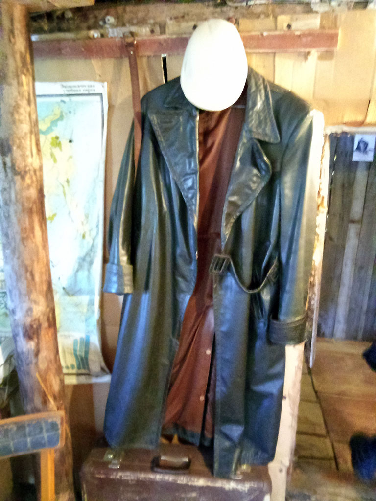 На стене висит кожаный плащ: не знаю оригинальный или похожий. Тоже такой хочу.