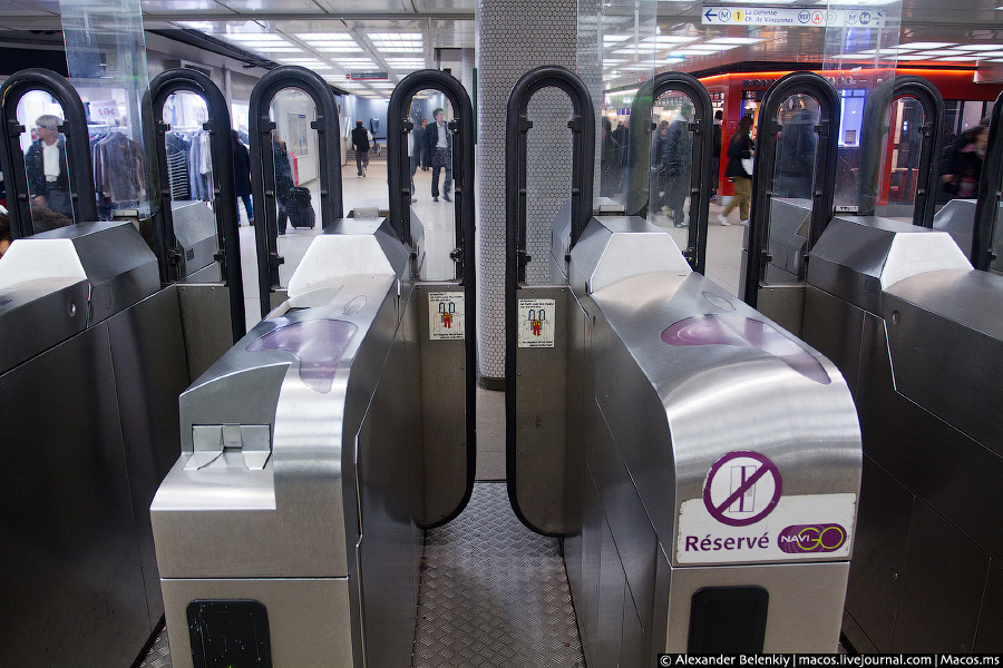 Вообще, "зайцы" - это бум парижского андеграунда. В свое время негры с окраин порядком задолбали работников транспорта, пришлось принимать кардинальные меры. Поэтому, на выходе тоже турникеты, еще большей высоты.