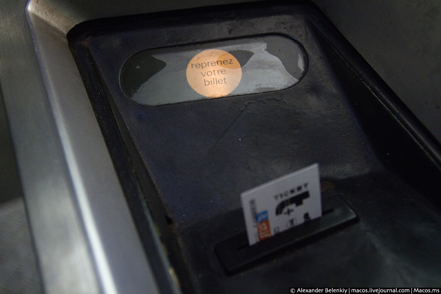 Турникеты специально сделаны такими высокими, чтобы через них нельзя было перепрыгнуть. Вставляете билет в специальное отверстие и уверенно делаете движение вперёд.