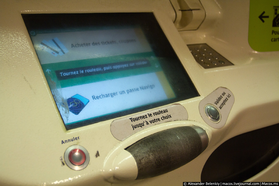 Автоматы по продаже билетов "разговаривают" на нескольких языках, некоторые даже на русском. Можно купить один билет, можно так называемый "карнет" на десять поездок (с существенной скидкой), можно зарядить свою персональную магнитную карточку. Билет на одну поездку стоит 1,7 евро, а на десять - 12,5. Оплатить можно картой или монетами. Есть автоматы, которые принимают к оплате только банковские карты. Интересно, что если вы покупаете "карнет", вам выдают не билет на десять поездку, а десять одноразовых талончиков.