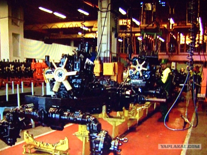 Тут ставят двигатели! Еще одно замечание - двигатели делают на другом заводе и гарантия на них начинается как только двигатель сходит с конвейра, то етсь получается что простоит трактор 2 года на стоянке и всё, гарантия на двигатель снимается. Данный вопрос сейчас или уже решили, или в процессе, а то не порядок.