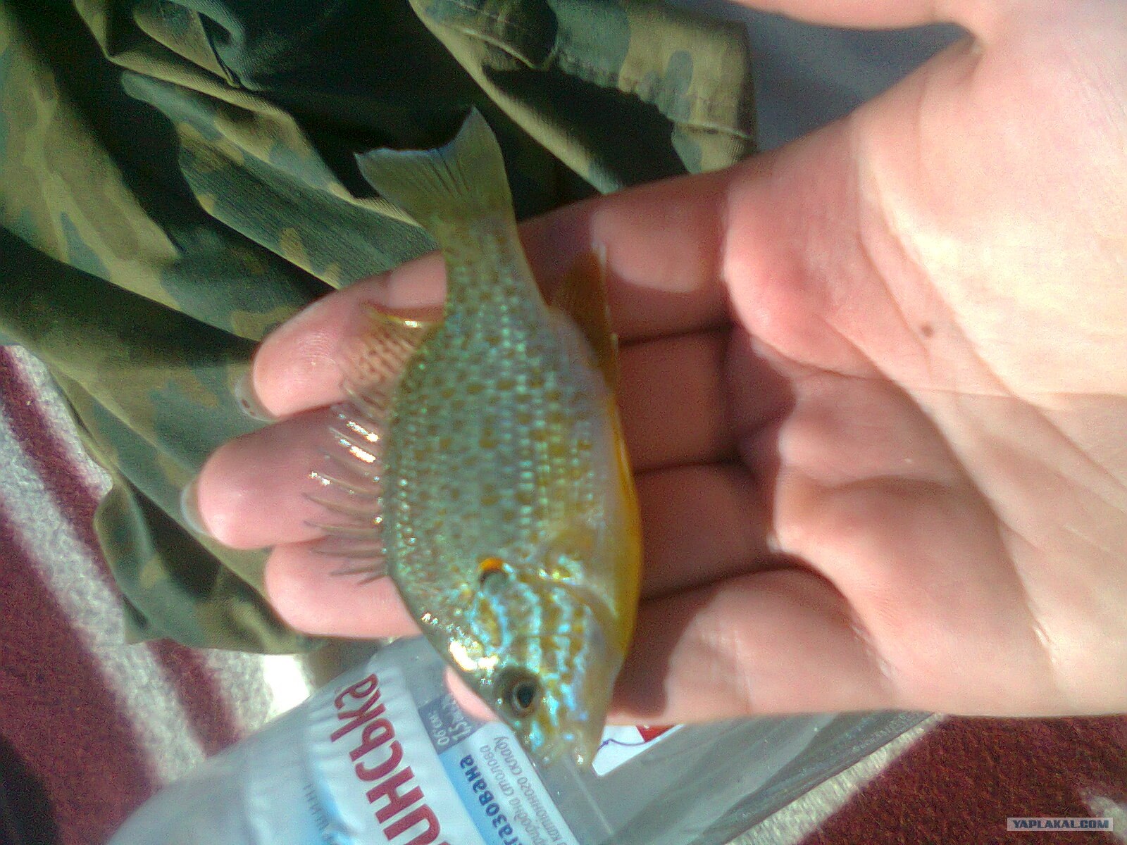 А вот и она =)) Хоть и крошка, зато чувство, что вытащила сома =)))) Как это здорово, даже не вериться! Ура! Мой первый улов!