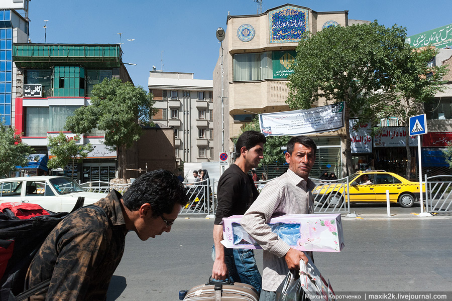 В Иране говорят о развитии туризма, но я за эти дни видел на улице лишь одного европейца, да и то в такси. Не встретил ни одного человека с фотоаппаратом, за исключением местных журналистов. Женщины от камеры отворачиваются или закрывают лицо руками, фотографироваться - не в местных традициях.