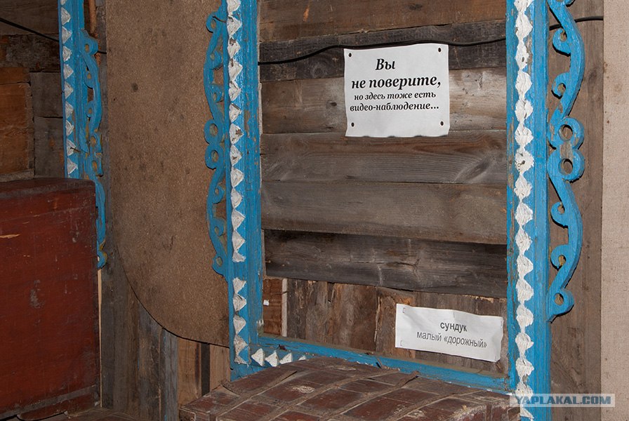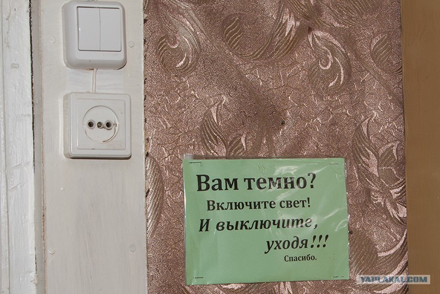 При входе низкая притолока. Поэтому висит такое объявление: