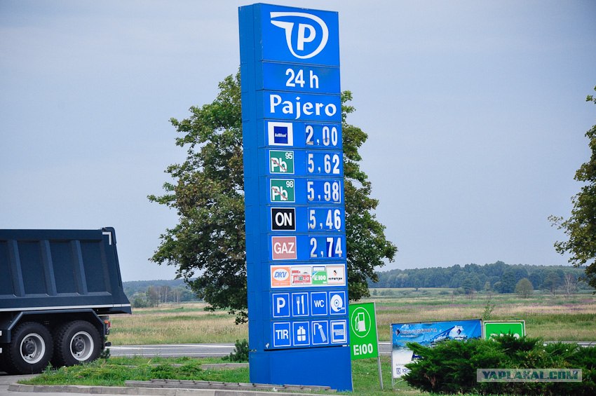 Там мы обменяли деньги на польские злоты, и пошли кушать. Pajero это большой комплекс, стоит отель, обменный пункт, супермаркет (Sklep по ихнему ), куча других магазинов, даже sex shop присутствует, ну и заправка конечно, вот цены в злотах. 1 злотый=10 руб или 1 евро=4 злотых.