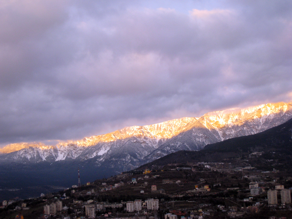 Летом немного другой эффект, но тоже очень похоже. В Гурзуфе недавно встречал рассвет, насыщенно-золотой цвет солнца и отсвет на горы. Встаёт над Медведь-горой... Эх, красота)