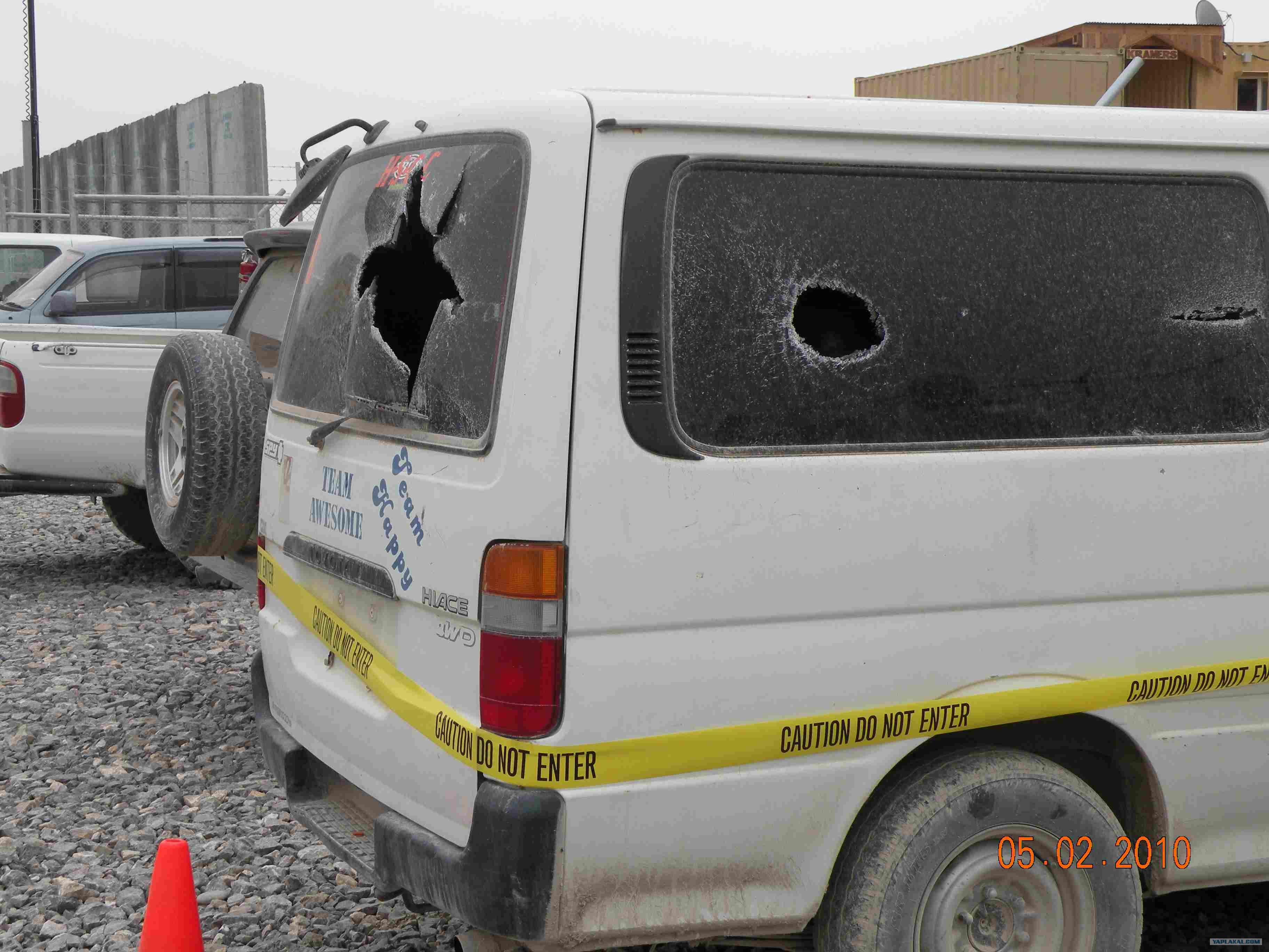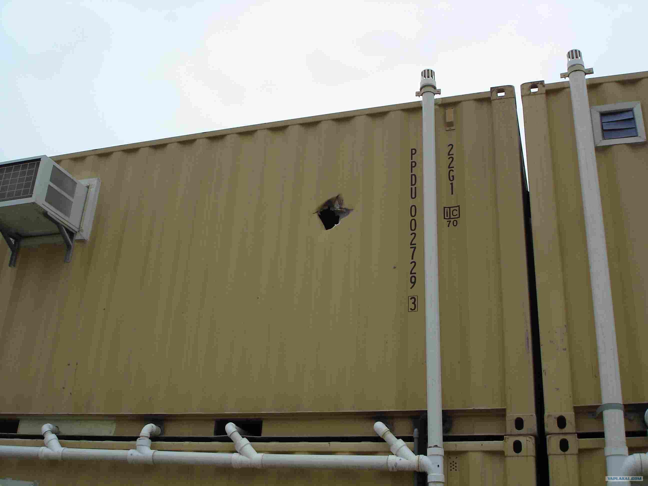 Кратко, одной из ночей, пендосы, выпустили ракету в один из лагерей военных, до самого лагеря конечно не достало, рвануло в 300м то вот осколок, попал, причем очень хорошо....