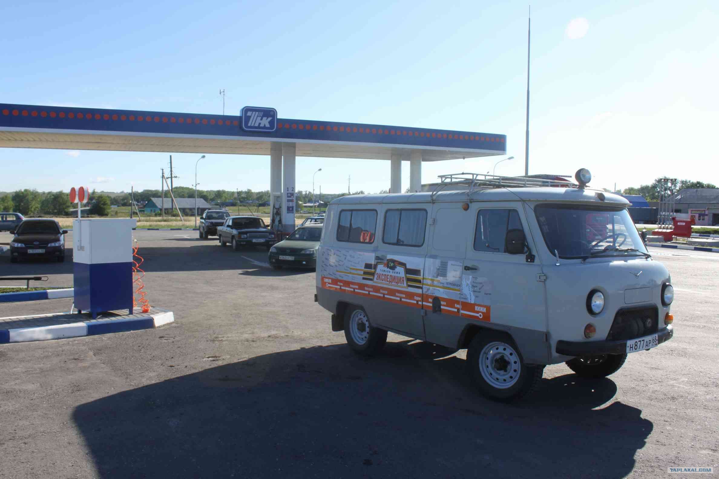 он очень печально- было решено его отмыть, покрасить пороги антигравием и сделать наклейку по бортам. После проделаных процедур мы сами были удивлены состоянием нашего УАЗика. Так как маршрут изначально планировлся слишком оптимистичный, на борту у нас наклейка Тамбов-Кижи