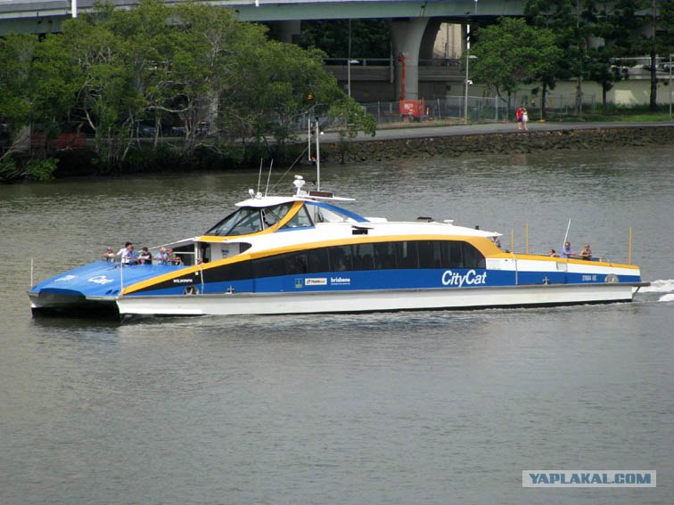 Так как Брисбен расположен на реке, то и в числе городского транспорта есть вот такие небольшие катера - я на таком катался три часа туда сюда - время до самолета убивал...Билет действует в течении полутора часов (вроде бы - точно я не помню) - можно выйти на любой пристани, погулять и потом по этому же билету сесть в следующий катер (каждые 15 минут ходят они).