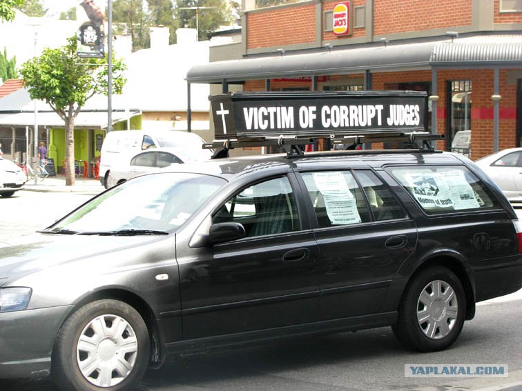 Жертва продажных судей - интересно сколько бы у нас проездила машина с такой надписью ?