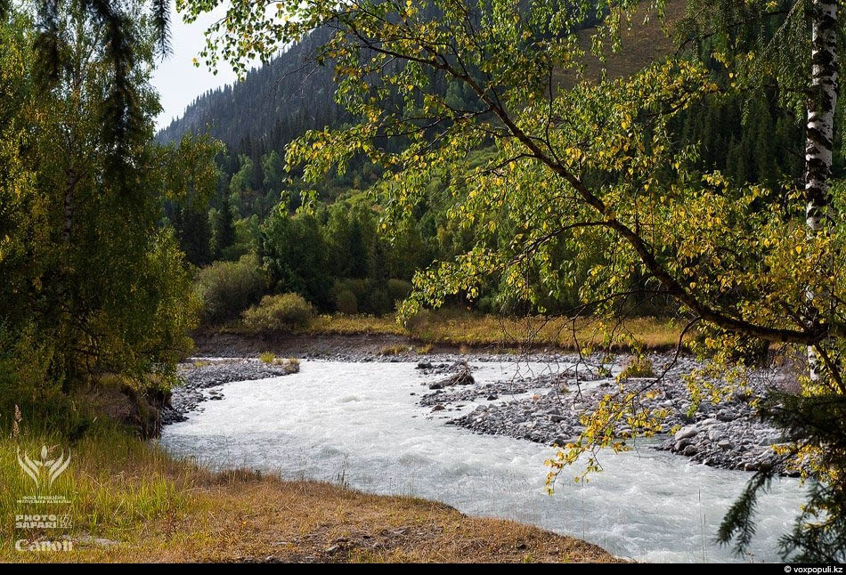 Ущелье Каинды («березовое») соответствует своему названию. Березовые рощи словно "пританцовывают" на берегах реки, вытекающей из одноименного озера