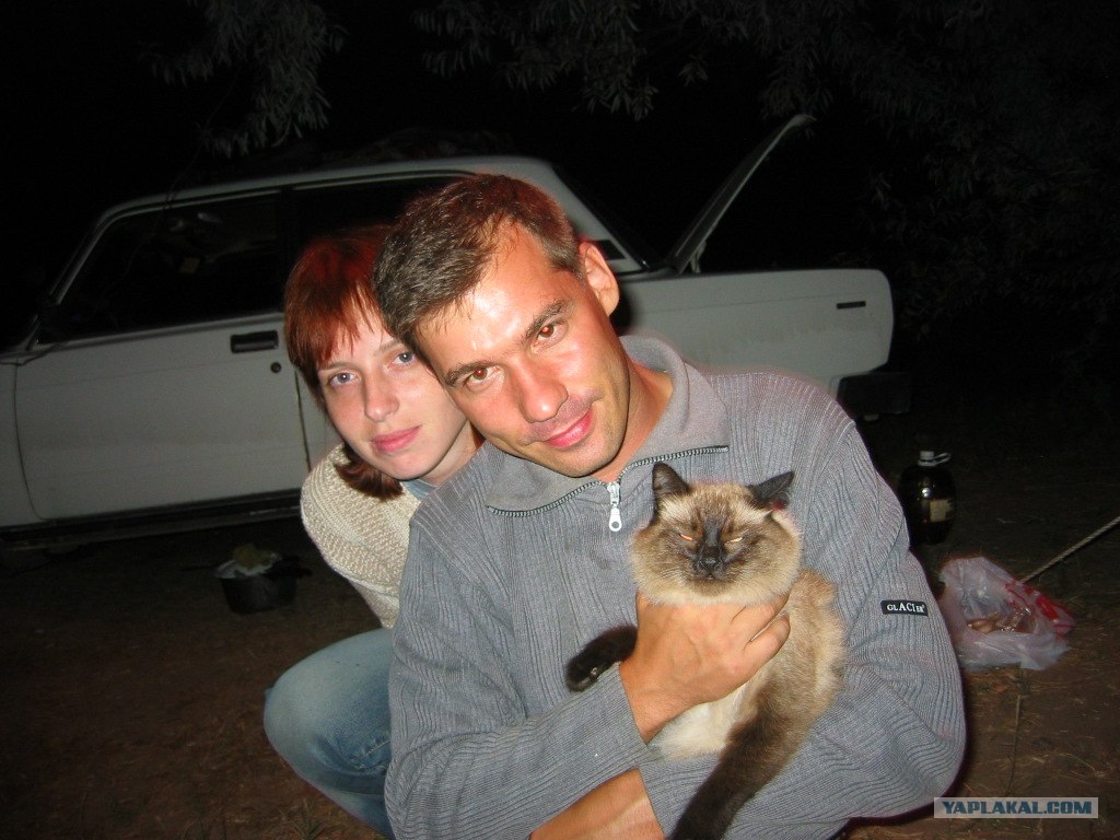 и земетив в стороне тоже светящиеся два глаза я подошел к ним увидел котика, взяв жалобно мяукающего кота (на тот момент я не знал кот был или кошка) меня сфоткали с ним.