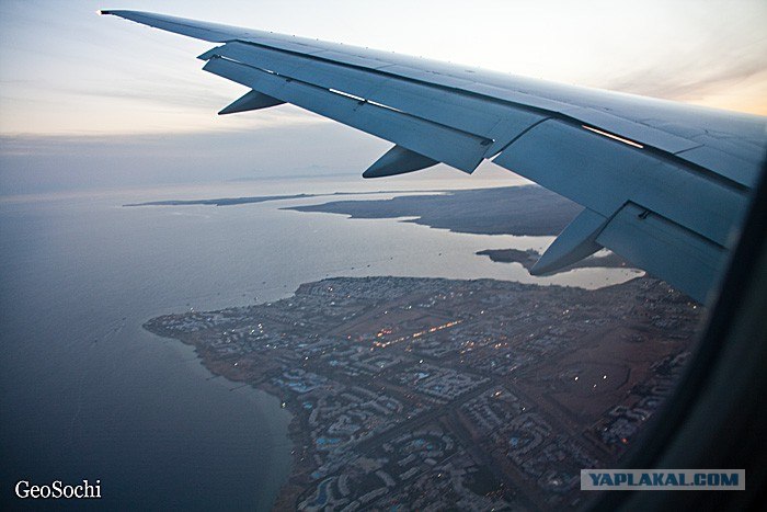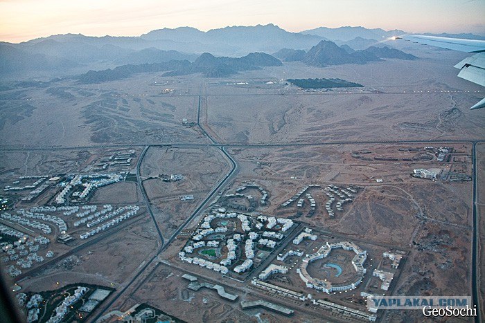 и вот, под крылом мелькают белоснежные отели Египетского курорта, выстроенного прямо в Синайской пустыне.