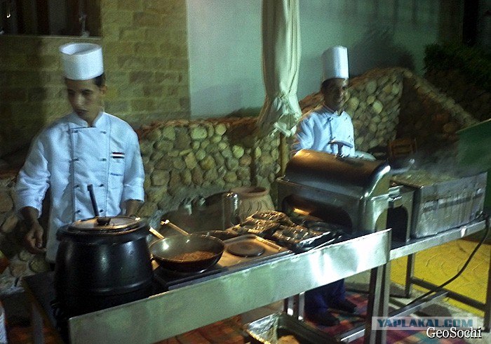 Сразу попадаем на сытный ужин, помимо обильного шведского стола, горы тортиков и сладостей, у бассейна мангал на котором готовят барбекю из нескольких видов сочного мяса и вкусные лепёшки. Начинаем не на шутку волноваться по поводу набора лишнего веса.