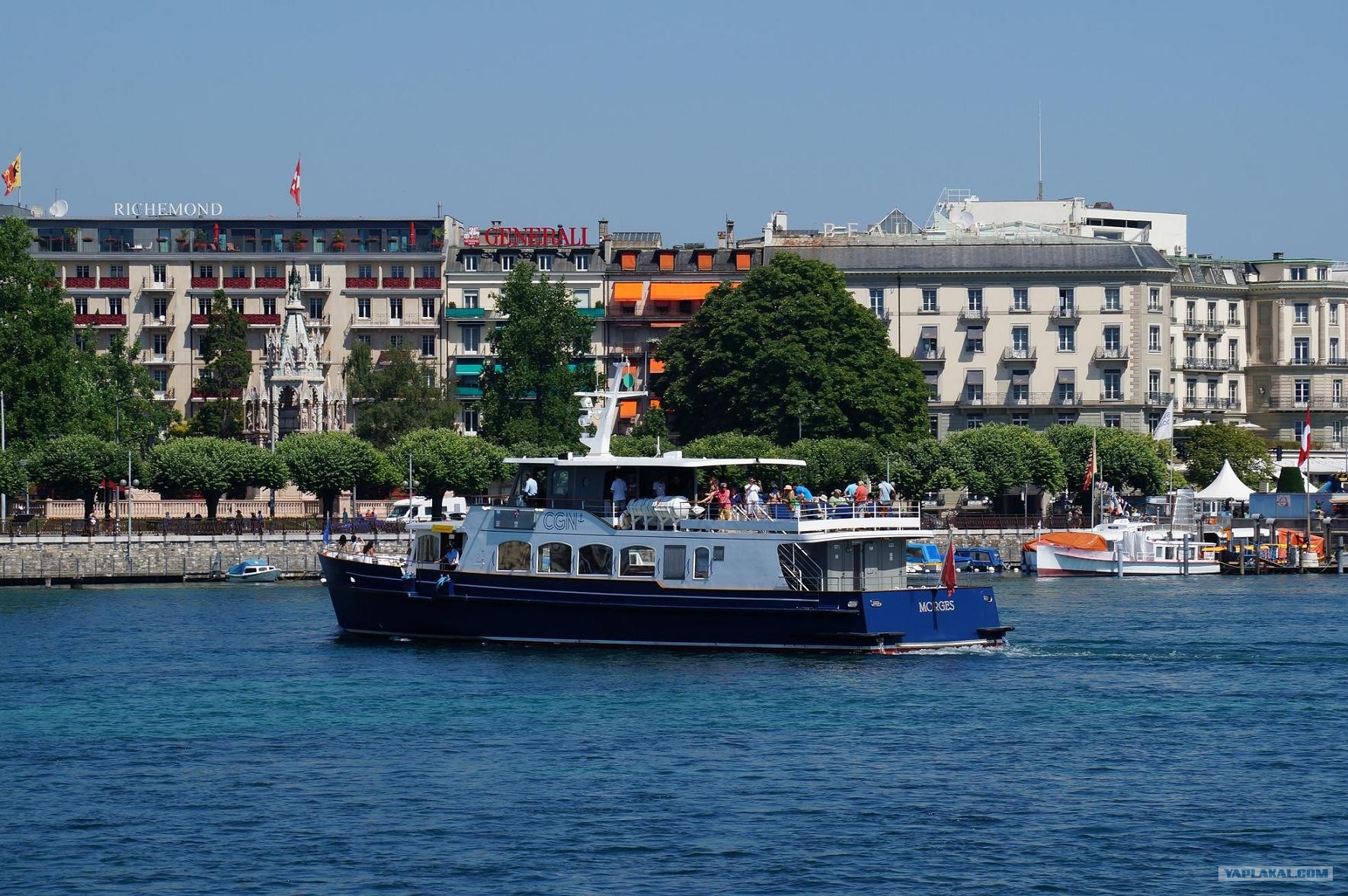 еще один символ Женевы фонтан высотой 140 метров бьющий прямо из озера