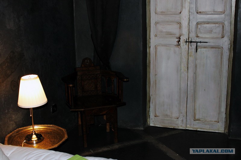 Но когда, с горем пополам, общаясь с местными на ломанном французском (будьте готовы к тому, что по-английски никто нигде не говорит), мы нашли свой отель в темном переулке и попали внутрь – мы были вознаграждены. Двери нам открыл большой улыбчивый негр и провел нас в настоящую пещеру Алладина. Наш риад назывался Le Rihani. Отели типа «риад» очень распространены в Марокко. Они представляют собой старые дома, отреставрированные и заполненные старинной мебелью с антикварными предметами интерьера. Во внутреннем дворе практически всегда растут апельсиновые/мандариновые деревья и разбит небольшой пруд с фонтанами. Рассчитаны риады на небольшое количество номеров и полностью закрыты от посторонних глаз. Если верить путеводителю Lonely Planet, многие приезжают в Марракеш целенаправленно наслаждаться риадами.
