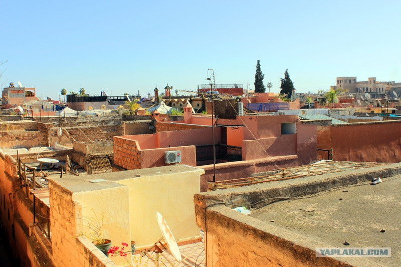 Прибыли в Марракеш когда уже темнело, отель искали 2 часа. Причиной тому стала невозможность проезда в старую часть города на машине. Медина (старая часть города) в основном всегда перекрыта и представляет собой лабиринт из торговых лавок с огромным количеством закоулков и уровней. Заблудиться – проще простого.