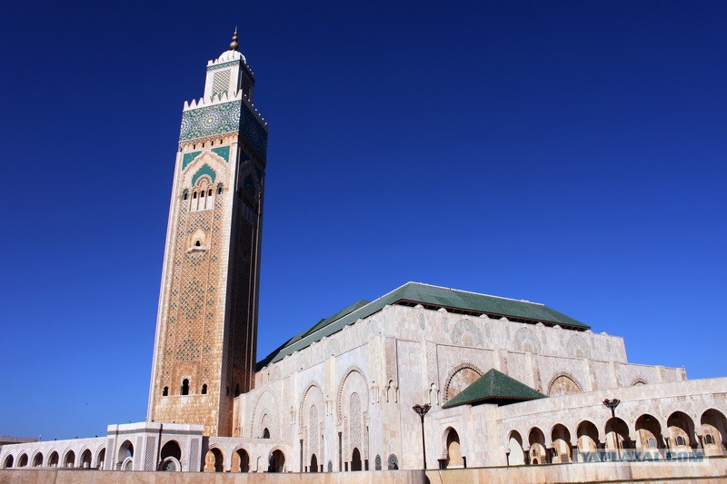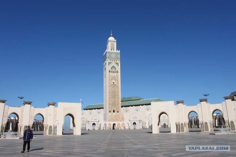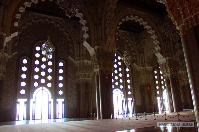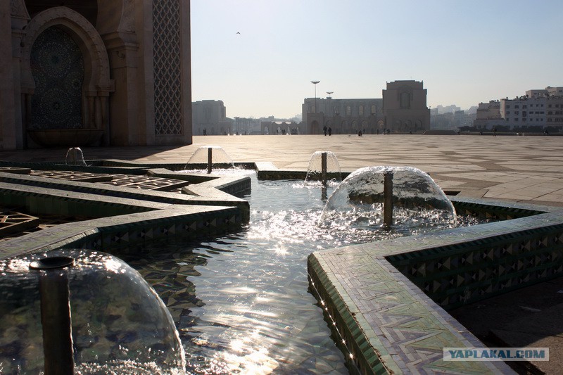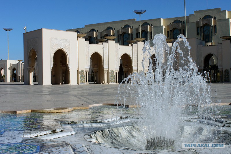Википедия пишет, что архитектор (который, кстати, был не мусульманин) при создании мечети был вдохновлен словами из Корана: «Трон Аллаха находится на воде». Поэтому разместил её на берегу Атлантического океана. Но знающие люди говорят, что все дело в том, что там был подходящий скальный грунт, который мог выдержать вес столько крупного проекта.