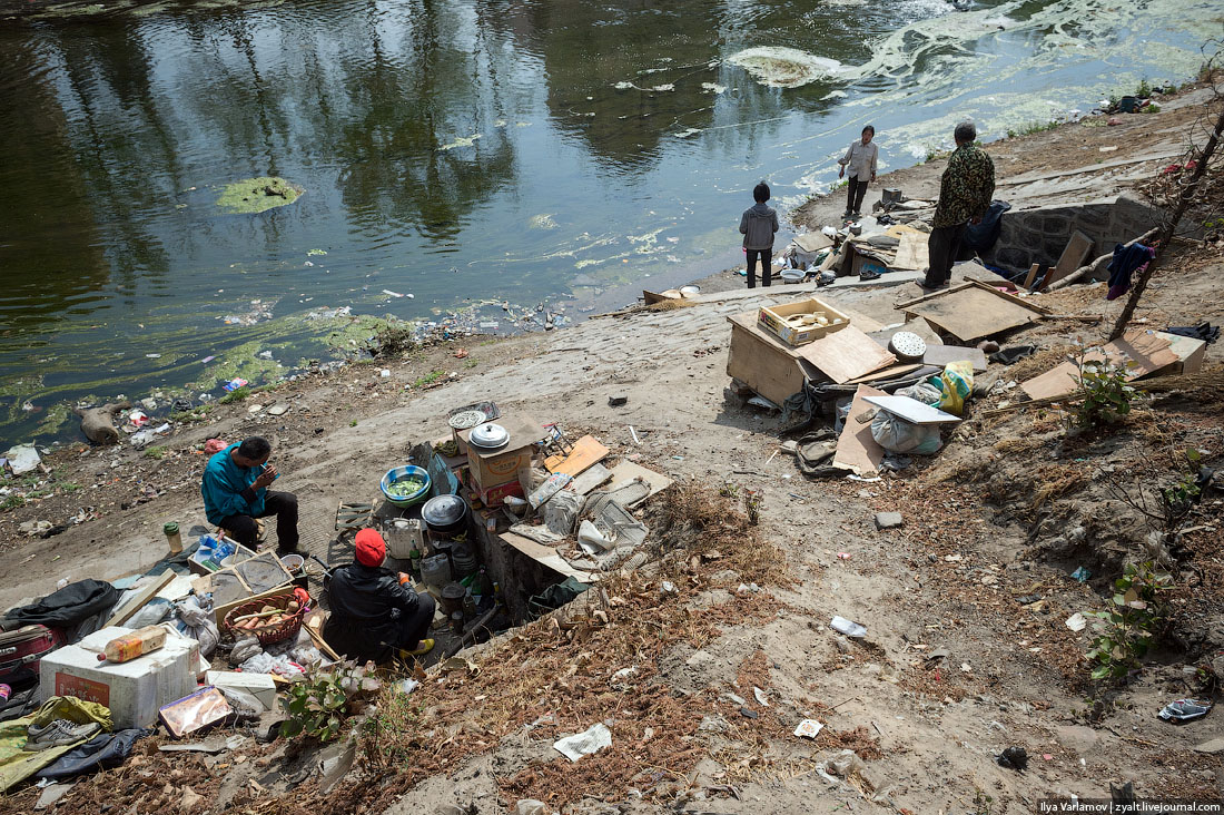 Ладно, посмотрим, как живут люди победнее - пекинские бездомные. Живут они на берегу живописной реки.