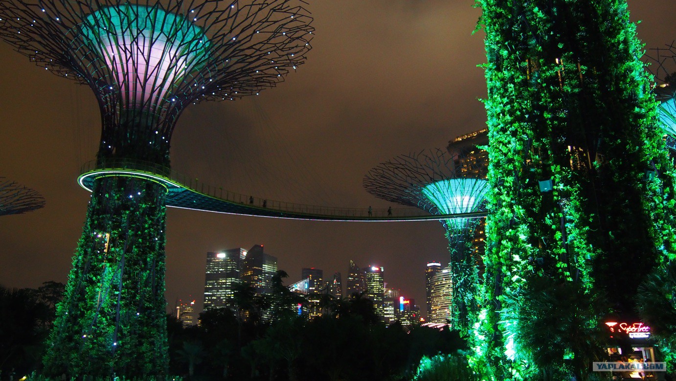 между этими монстрами пешеходные переходы, а на самих деревьях - рестораны и кафе. Они постоянно меняют цвет подсветки и звучит какая-то волшебная музыка. Реально, бросает в дрожь.