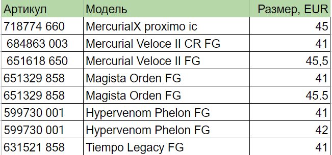 Бутсы получил.Продавцу спасибо!Не спец в отличии подделки от настоящих,но сделаны качественно.