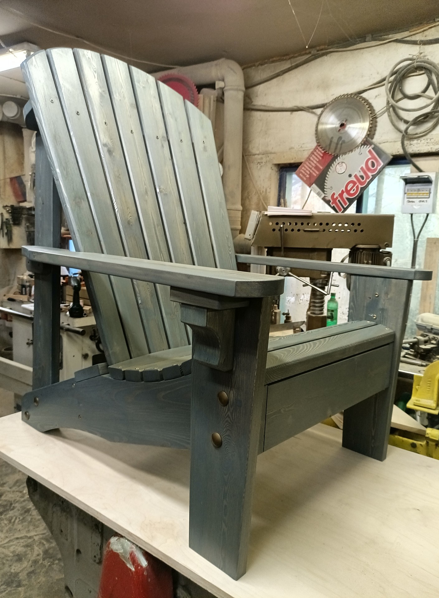 Не делается такое три дня. Если делаете на продажу, зачем что-то выдумывать? Оно же страшное. В сети полно симпатичных. «Адирондак» самые удобные, проверены десятилетиями. Вот делал себе.