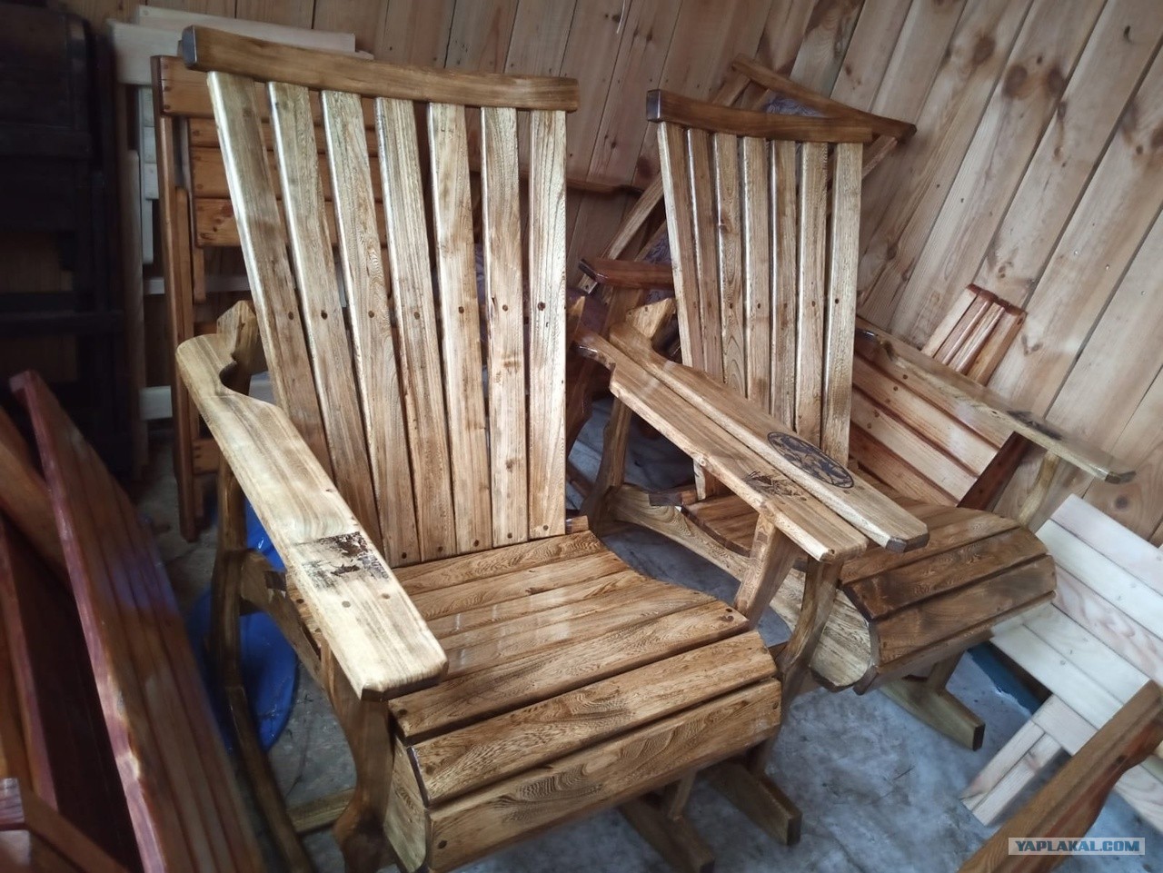 на базе этого кресла и качалки.С прожигом на подлокотниках.Материал вяз.
