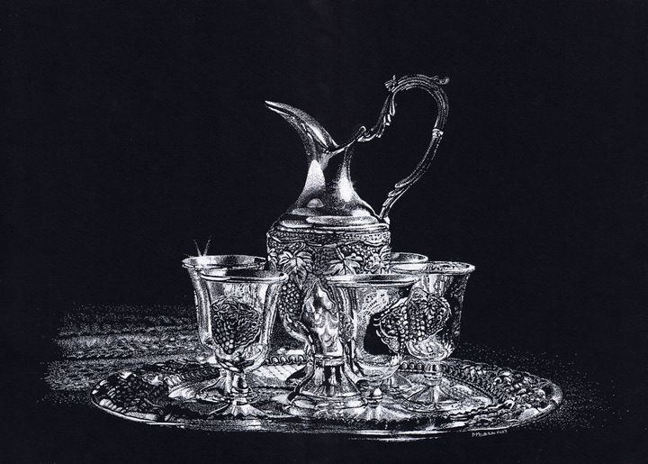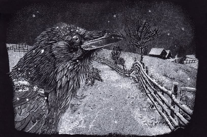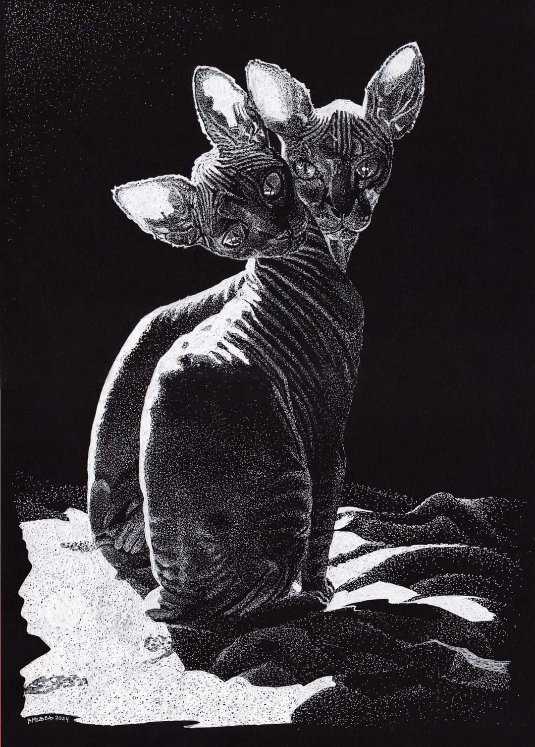 Работа 50х70 см, выполнена на черном картоне белой гелевой ручкой в технике дотворк и стиплинг.