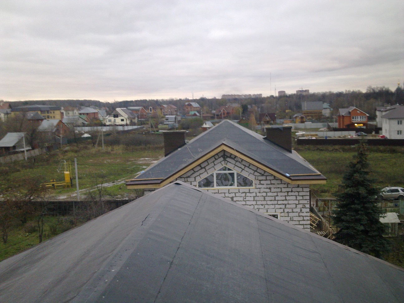 Класть подкладочный ковер "Технониколь" битумную черепицу другой марки - это вообще театр абсурда. Адгезия мастики на черепице подгоняется под ковер именно их марки. Потеря прочности примыкания черепицы на ровном месте. Тупо сделано, хвастаться тут нечем.