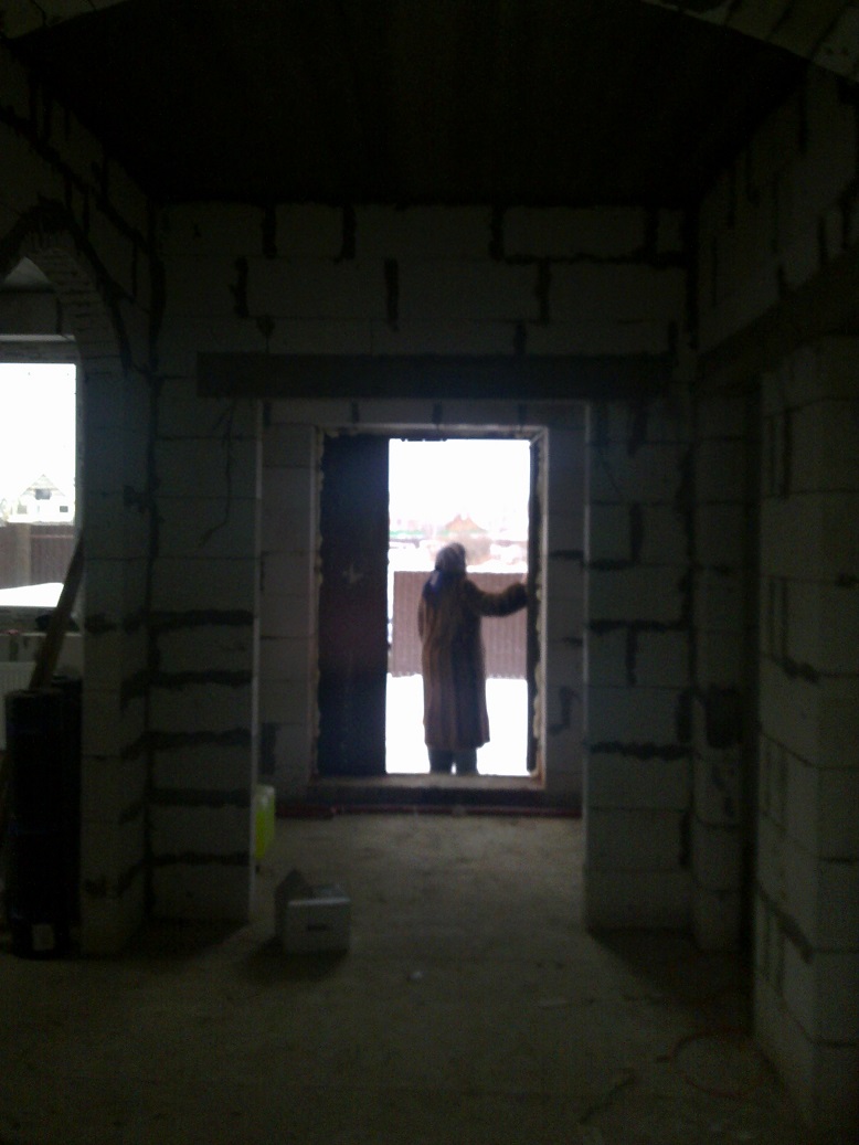 23 декабря 2012 года, дом под крышей, газ подключен, отопление работает, в доме тепло, все работы прекратил до марта-апреля, решил, что будет лучше, если за зиму стены подсохнут, а потом можно и отделкой заняться.