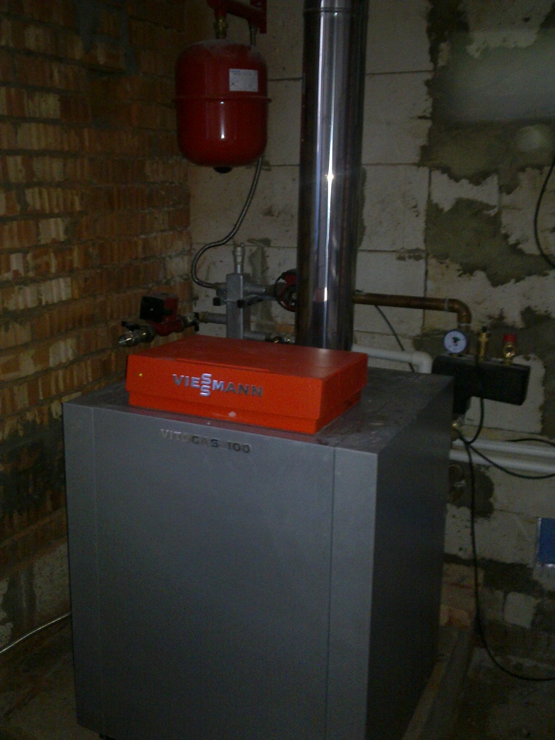 котел, на стене за ним виден контур заделанного дверного проема