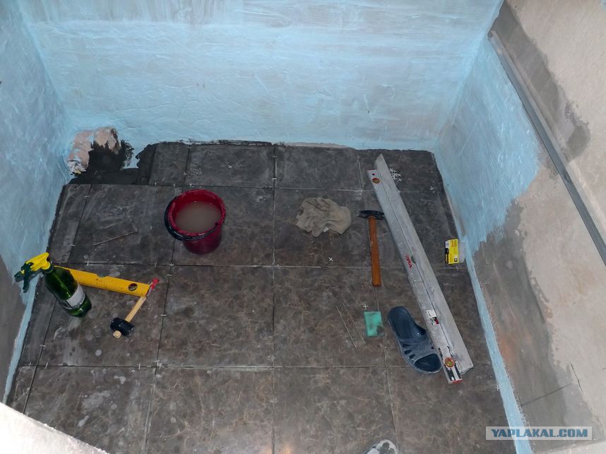 Долго не мог решиться начать класть плитку на пол. Всё же впервые, х.з. с какой стороны взяться, чтобы потом пальцем не показывали. Глаза боятся, а руки-крюки. На этот момент уже были куплены клей, плитка напольная, плиткорез, крестики, шпатель резиновый, ванна. Всё покупали по доступным ценам. В конце приложу смету.