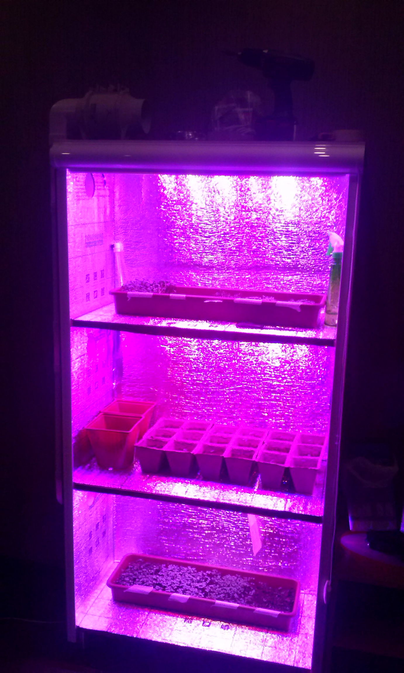 14.) В принципе на этом все. Жена довольна свежей зеленью, дочурка вроде тоже как. Потребляемая мощность шкафа около 160Вт.